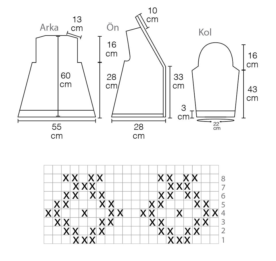 ROW 4-) Arm size 43cm at the arm house for both sides of the 4 + 3 + 2 stitches are cut. In the next front row, one stitche is cut 6 times from both sides.