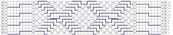 ROW 1-) Starts with 54 stitches. Then the Diagram is applied.